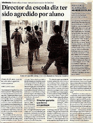 O conflito aberto existente nas escolas , não é apanágio das escolas mais desfavorecidas ou carenciadas , existe igualmente noutras escolas... O que vêm a público são casos extremos que sem dúvida merecem a maior atenção , mas não a coberto de algum jornalismo menos sério , ou um certo discurso daniel sampaiês que abomino , por distrair as atenções do que é , a meu ver essencial . Desde sempre a escola atribui culpas á família e a família á escola, como se de um problema insolúvel se tratasse. Ora , não o é . A escola é um aparelho ideológico do Estado que visa formar cidadãos obedientes e servis, que não reclamem , não discutam , votem ou de preferência não, aprendam o minímo, Nada me serve discutir aqui a minha memória de há muitos anos , pois , ela é histórica , e como tal deve ser discutida, e nesse cômputo está certamente o conflito com quem desempenhava o seu papel que o estado exigia, e no caso salazarista estava bem montado. O que me preocupa é o facto de a escola reportar para as famílias o que acontece nas escolas , sabendo-se que a propagada crise de autoridade, nada mais é do que o estado social em que nos encontramos, com raizes autoritárias nos últimos cinquenta anos. Por isso em vez de discutir o verdadeiro estado em que se está , um certo discurso psicológico ao pretender desmontar a crise de autoridade , apenas a serve com bonito linguajar , distraindo , inclusivamente os professores do real problema .
